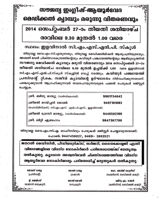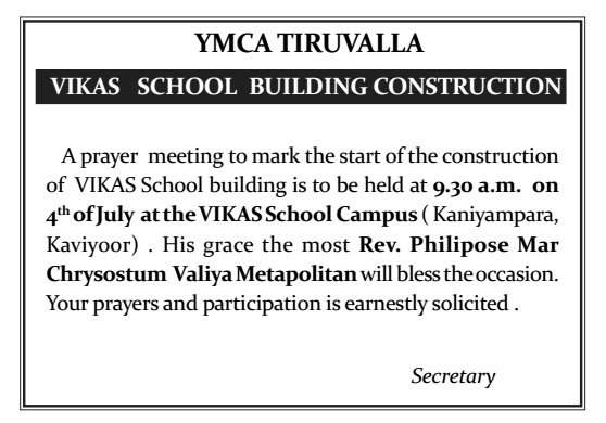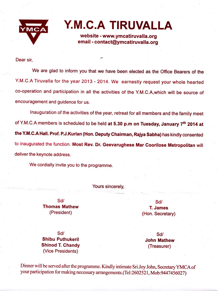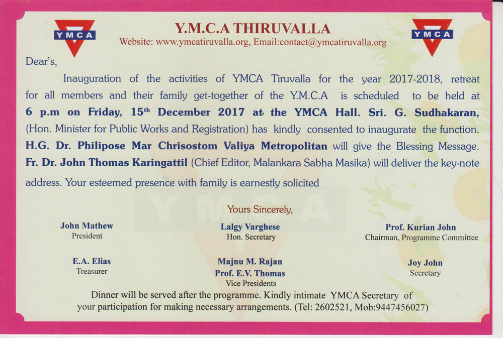 YMCA Tiruvalla Inauguration of activities - 2014