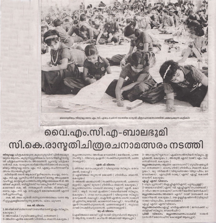 News on mathrubhoomi relating YMCA Rasmrithi Drawing Competition
