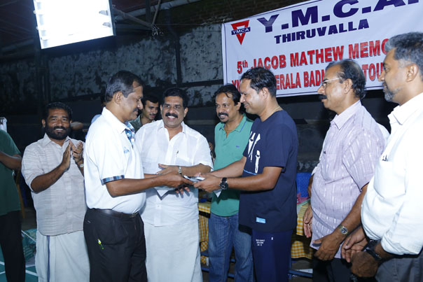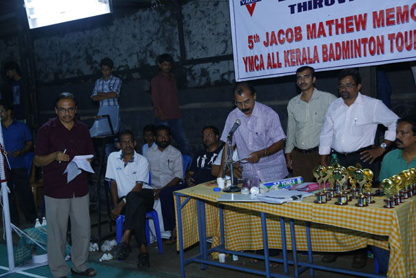 YMCA Tiruvalla In-House Shuttle tournament winners with Chief guest Varghese George Prof Prasad Thomas Kodiyatt & Abraham Kurien(Winners Above-60), P Y Pappachan & Dr Roy Alexander( Runner-up Above-60), Binu & Shaji Ayppan(Winners Senior), Kurien Varghese & Sudharshan( Runner-up Senior), Mathew George & Baby Zachariah Titus(Winners Above-45), Looney Titus & Ajoy ( Runner-up Above-45)